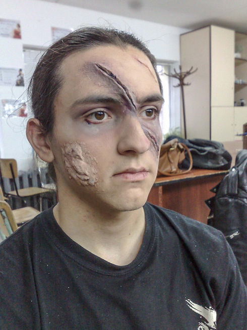 One of the subjects was to reproduce a beaten person with damages in heavy condition.