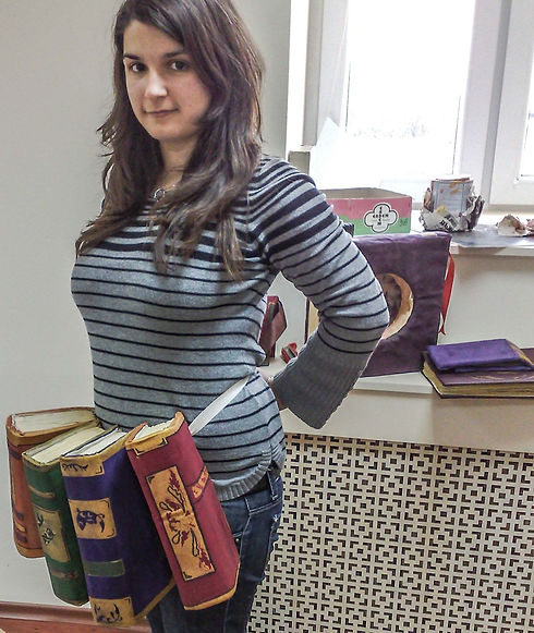 Invited to work with one of the big contemporary scenographs ... for his theatre piece my college and I made books in many utilities like, hats, sacks, clothes etc.